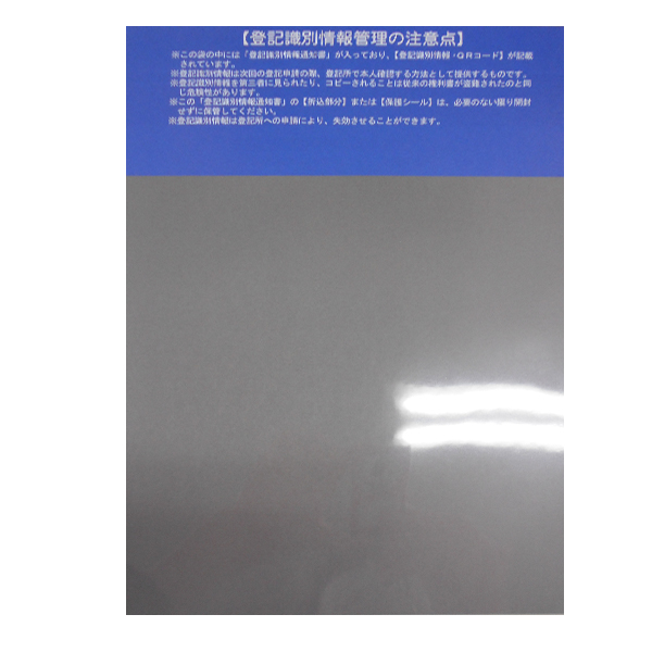 登記識別情報封入OPP袋 |